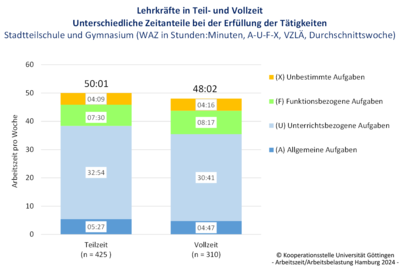 Die Studie liefert einen belastbaren, detaillierten Einblick in das tatsächliche Zeitbudget von Lehrkräften in Stadtteilschule und Gymnasium. Dazu haben 735 Lehrkräfte ihre Arbeitszeit über das zweite Schuljahr 2023/24 hinweg erfasst. Damit liegen für Hamburg erstmals umfassende Daten zur tatsächlichen Arbeitszeit vor – wissenschaftlich fundiert und methodisch anschlussfähig. Es gibt sogar aktuelle vergleichbare Daten für Berlin 2023/24 und ältere für Niedersachsen 2015/16. Diese Länder zeichnen sich durch ein abweichendes Arbeitszeitmodell aus (Deputatsystem).